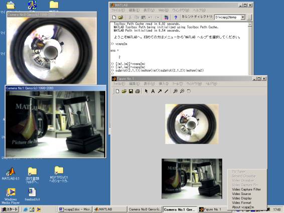 number usually 2 % capture mode [aa,bb]=vcapg2;% grabbing camera image. subplot(1,2,1);imshow(aa);subplot(1,2,2);imshow(bb); |
