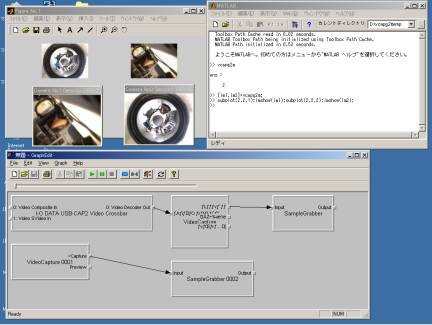 number usually 1 close all;figure(1);set(1,'doublebuffer','on'); % capture mode for i=1:100 aa=vcapg2;% grabbing camera image. subplot(2,1,1);imshow(aa);subplot(2,1,2);imshow(diff(double(aa(:,:,1)),[]); drawnow;% this is important to view realtime. end clear all; % remove |